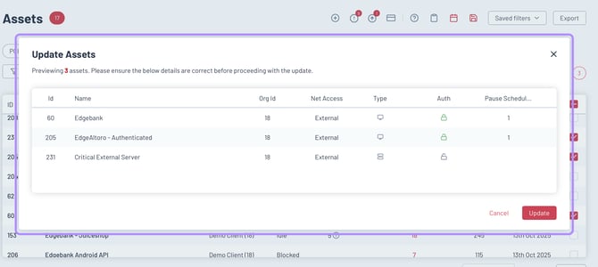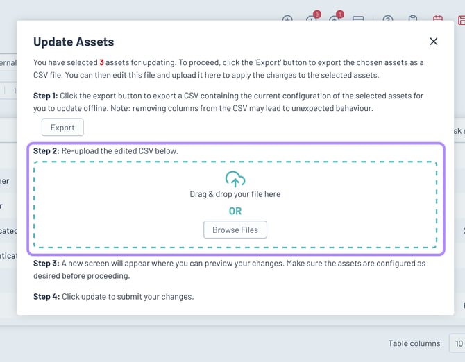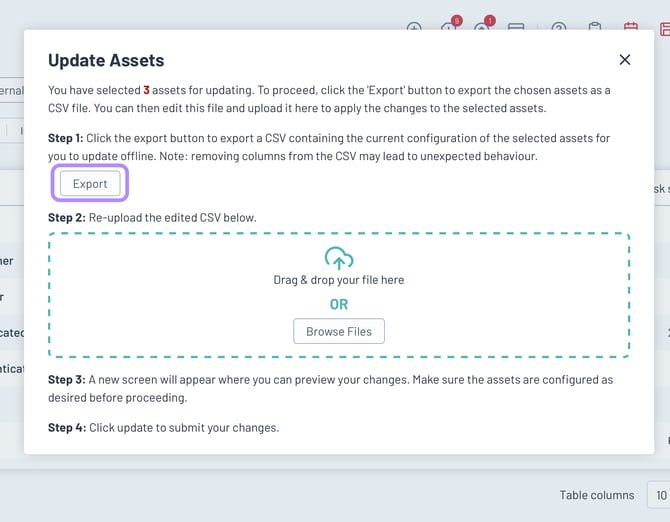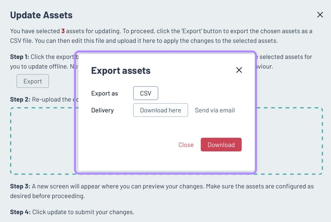 Follow the steps to update the assets in the UI. You must download the .csv that has the editable data associated with your assets.